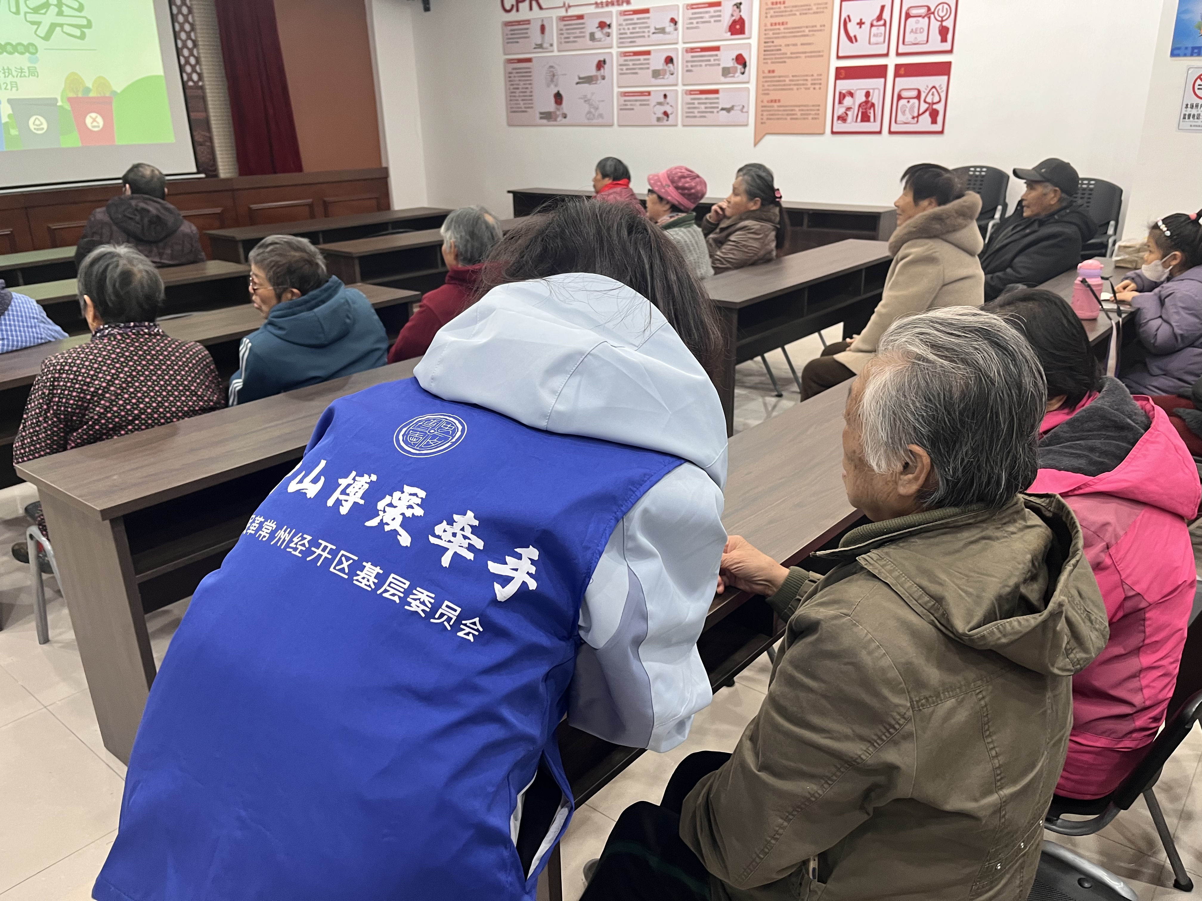 12月4日,中山博爱志愿服务常州经开分队在常州经开区蓝山湖小区开展宪法日法律服务活动,成员为小区居民作主题宣讲并答疑。