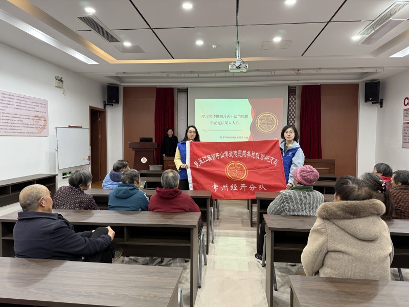 12月4日,民革常州市委会直属总支部赴横山桥恒耐工业园区开展“12·4”宪法日服务营商环境普法活动,为企业员工普及安全生产知识、《法治宣传教育法》和2026年度居民医保政策。