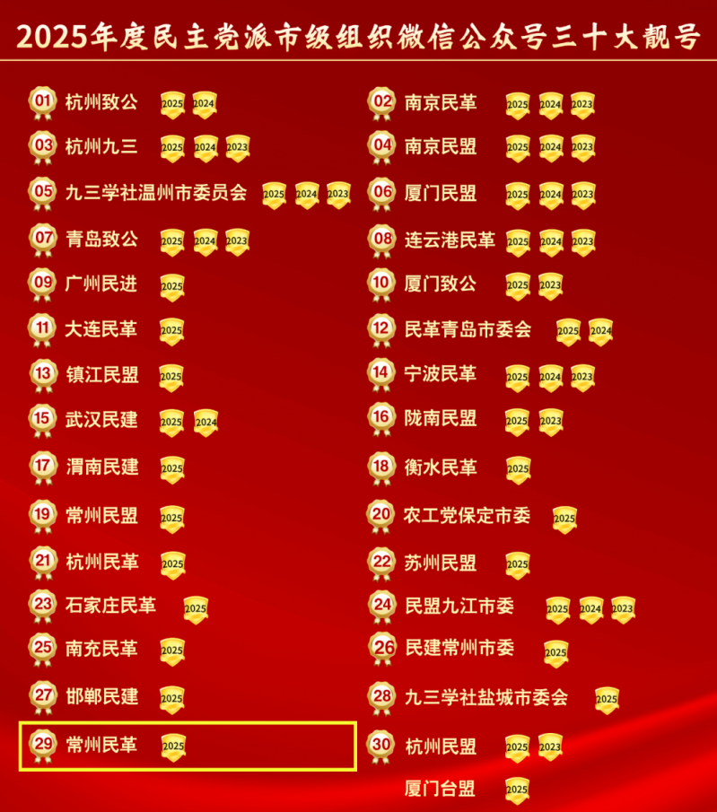 靓号榜单不仅是对新媒体运营成效的直观反映,更是推动民主党派宣传工作守正创新的重要抓手,已成为衡量民主党派市级组织微信公众号建设水平的重要参考。